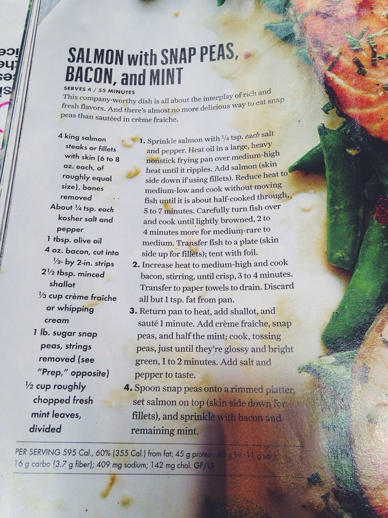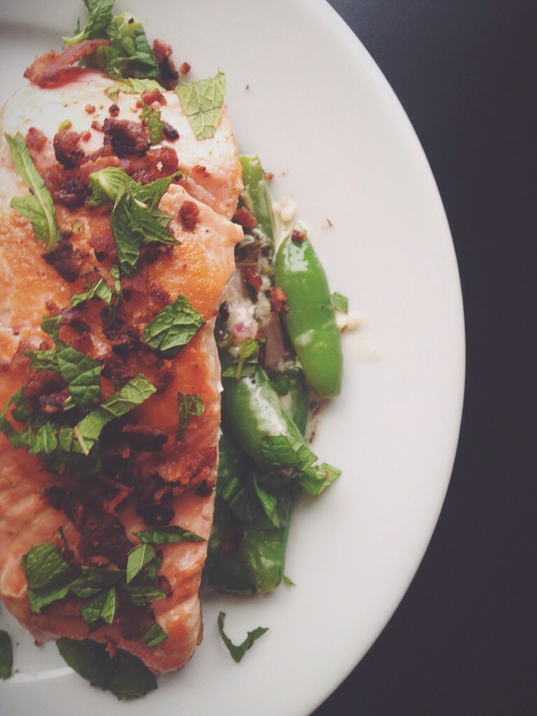 I would say on the average day I spend about 96% of my brain power on food….what I ate, what I will eat next, what I will make for dinner, when I will get to try that next recipe, what will be fresh at the market this week. It’s probably definitely not normal but it means I always have a long list of recipes in my back pocket to pull from, and hey, it is part of what led to this blog in the first place. So it shouldn’t be shocking that while getting my hair done I was snapping pictures with my phone of recipes I wanted to try. One of those must try recipes was this salmon dish, and after getting all the goods to make it I was treated to a “you kick back and I will cook” night by my hubs. He did such a great job (picture below) and we were lucky to have a sizeable piece of fish leftover. All good stuff, right? Yes, but let’s be honest, eating leftover fish is not good, in fact it is often rather gross. The next night I stared into the fridge and was hit with an idea combining leftovers from two difference dinners and struck gold. Next time you make a dinner schedule for the week incorporate the two meals below and you will be able to use similar ingredients to stretch it into a third meal…perfect!