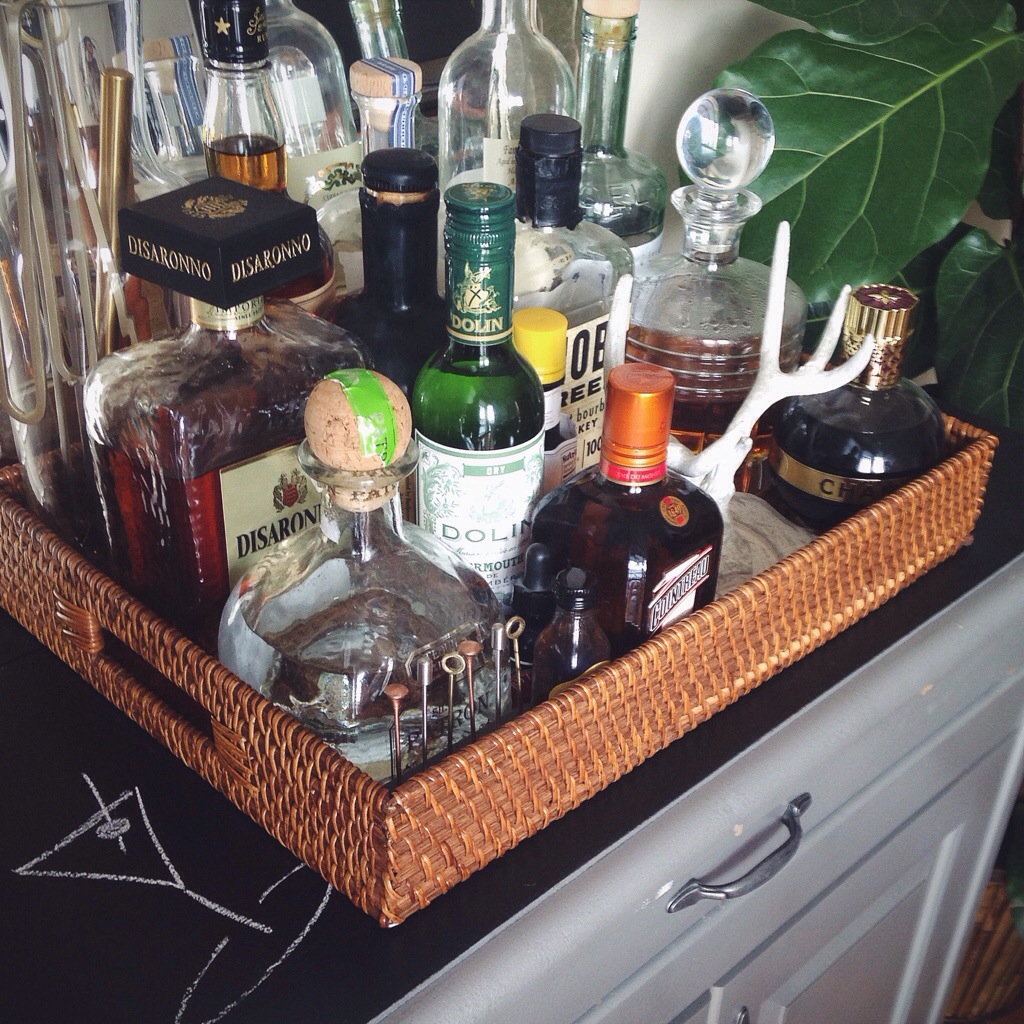 This bar station is my version of a bar cart, complete with a chalkboard top to feature specialty drinks on fun occassions.