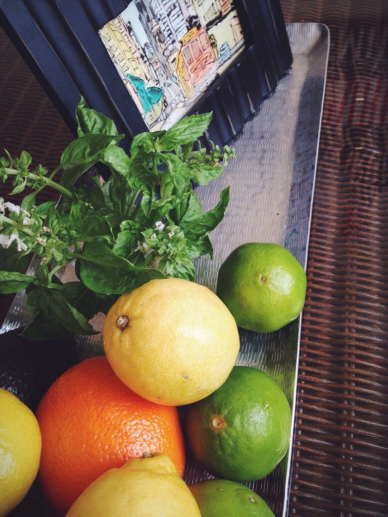 This tray is on the coffee table in our kitchen seating area. I use it to hold my herbs and farmers market haul but move it to the counter when setting out appetizers for guests.