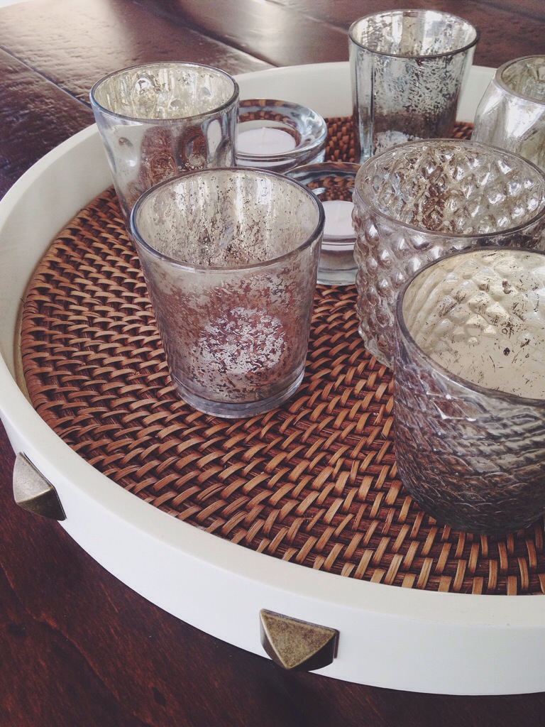 Instead of floral arrangements at our wedding we used mercury votives to give dinner a romantic glow. I have some on our table to remind us of that perfect day, I just pop in new tea lights and I’m ready for our next dinner party.
