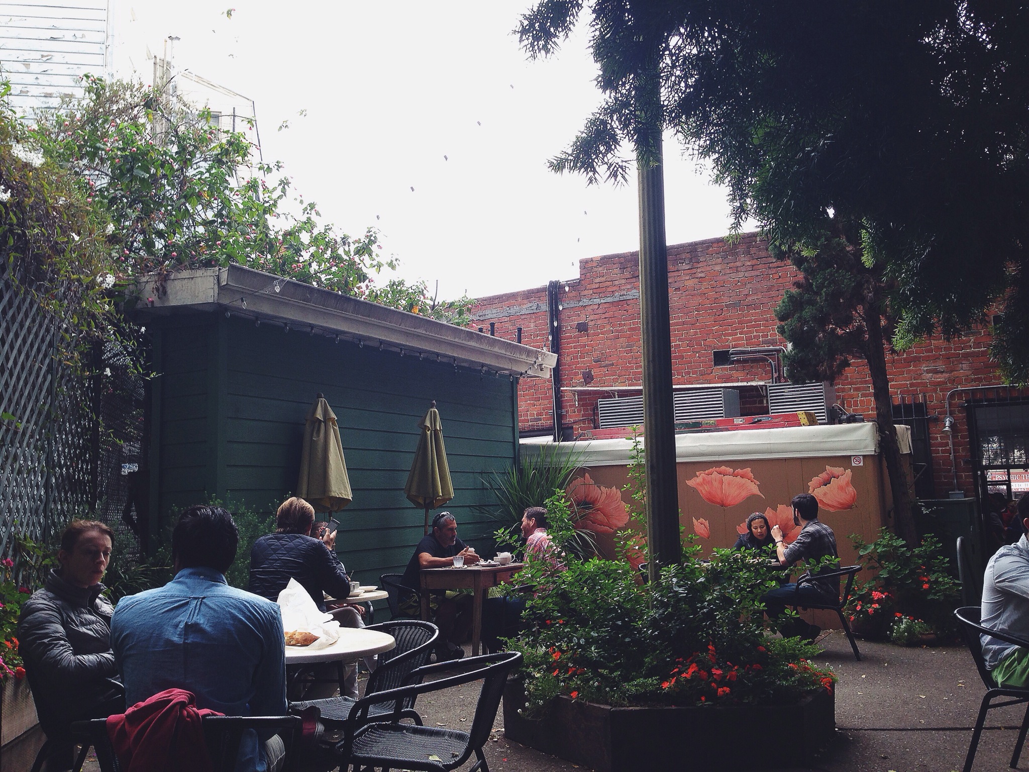 Why can’t every change of plans lead to yummy baked goods? Such was the case this last weekend when a cuuuhhrazzzy long line at our chosen brunch spot led to a walk around the corner to a darling neighborhood bakery with yumminess galore. Check out that case of golden baked heaven, and just trust me, everything was as wonderful as it looks. Makes me think I need to make an effort to go outside of the chatter in San Francisco foodieland and give some places a try just because. Let the exploration begin!
