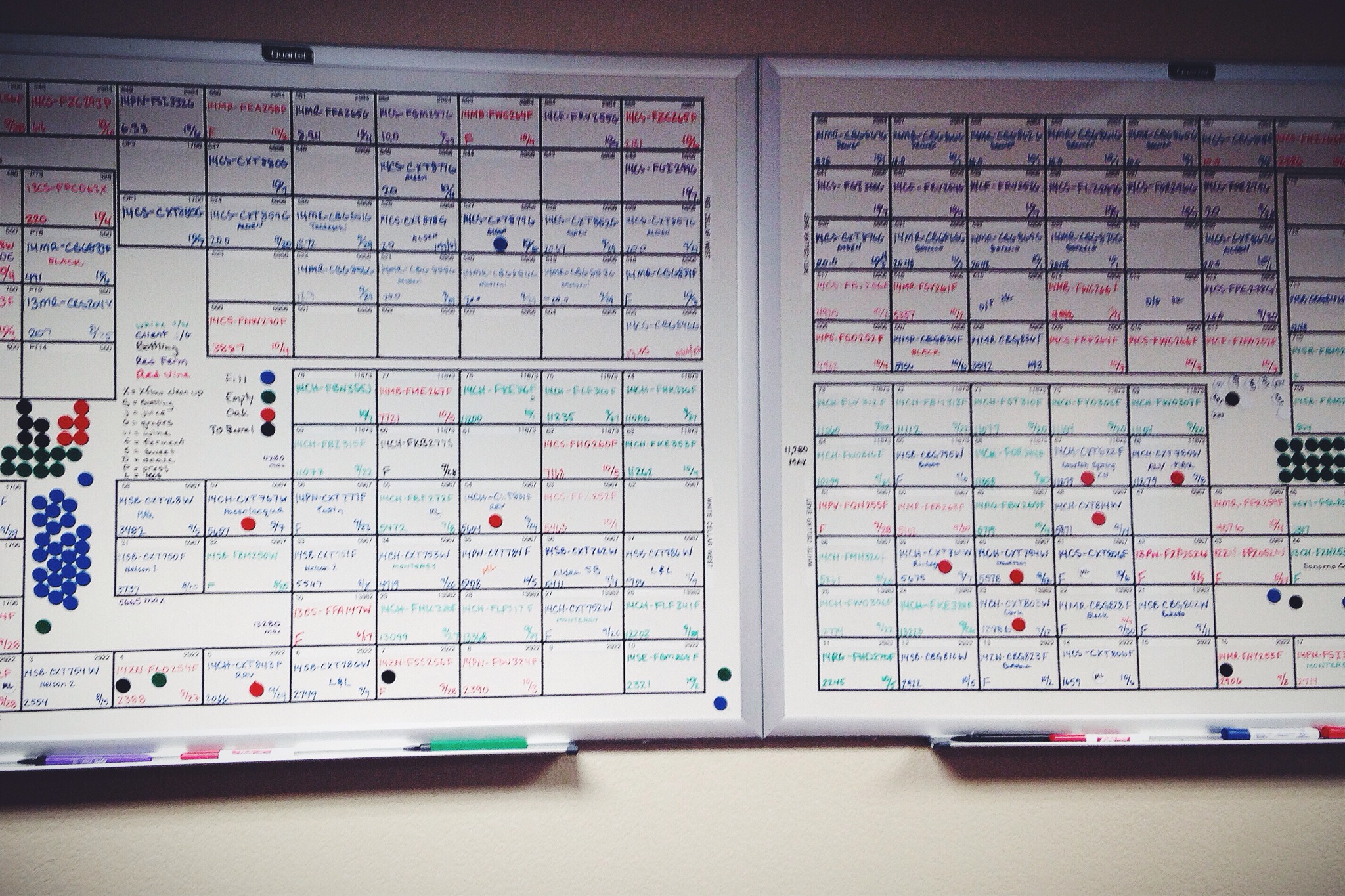 One of several tracking boards (done electronically as well) for a quick visual on the juice and corresponding tank