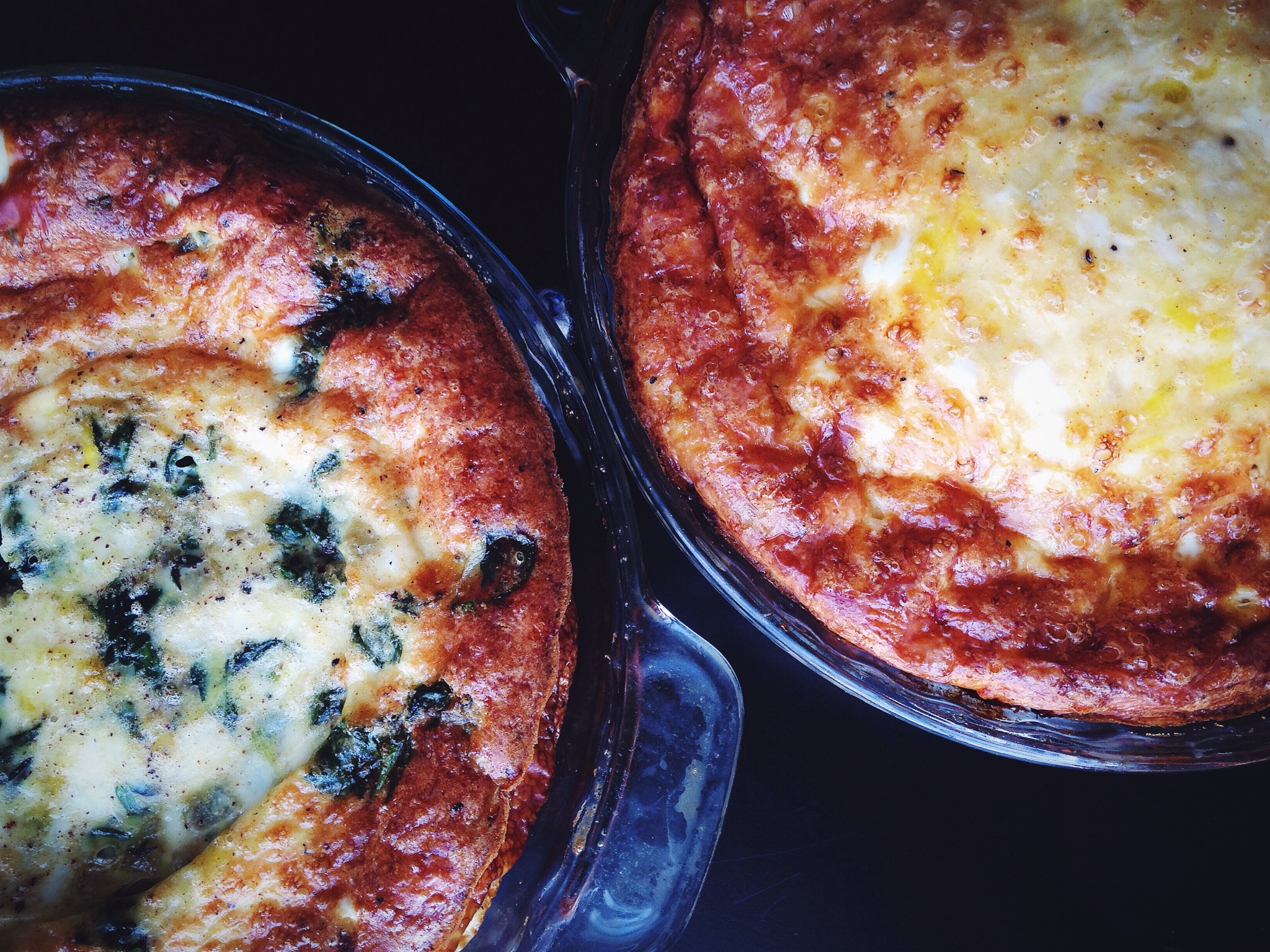 Warning: my quiche is not traditional as I like to make it a healthier option and avoid using as much cream and cheese, that said it is still delicious (in my humble opinion). The first rule of quiche (one I learned the hard way) is to cook all the ingredients in your quiche before you assemble the dish. That means to saute the veggies, brown the meats and incorporate the herbs and spices before adding to your dish and pouring over the raw egg mixture. Below are the loose recipes I used for our meal.