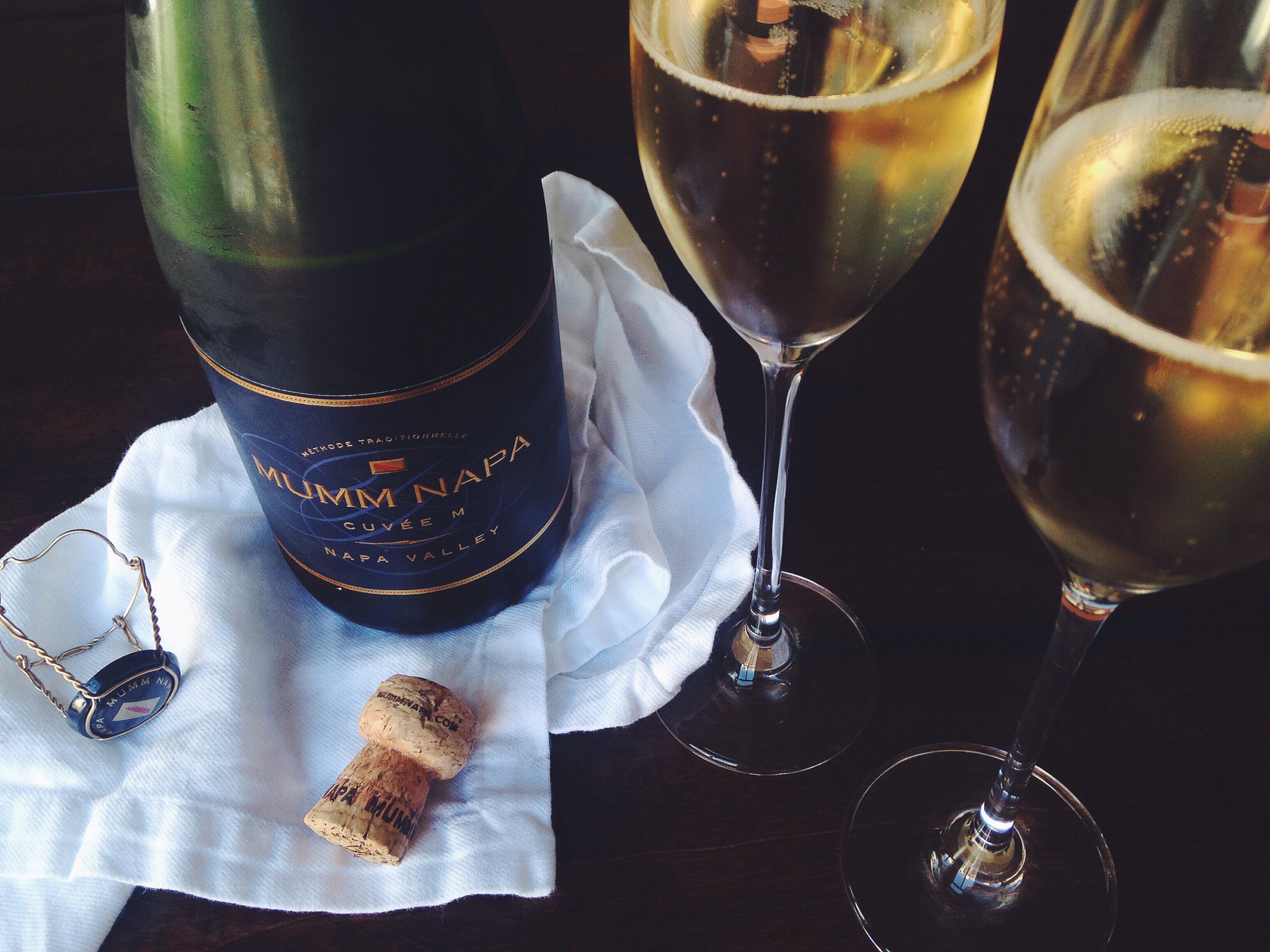 Mumm Napa Cuvee M, Napa CA, aromas of sweet strawberry and raspberry but with stone fruit flavors like peach and pear with a caramel and brioche element, this bottle was a gift but it can be found on sale for $16.99 online