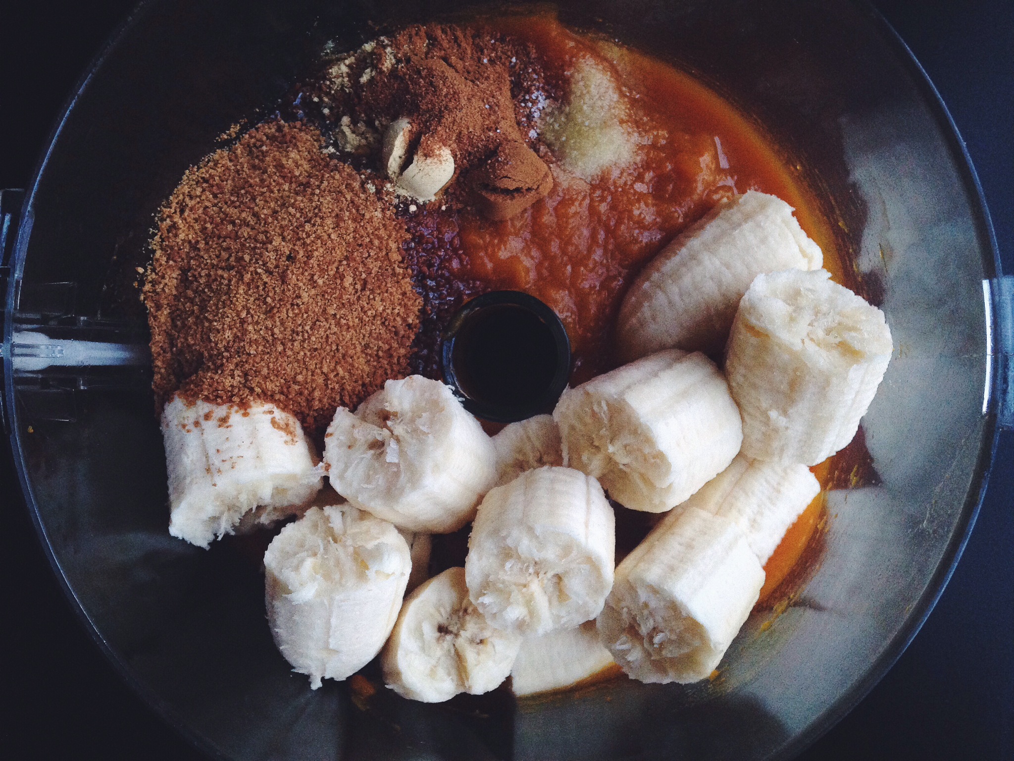 Preheat oven to 350. In a food processor combine all the cupcake ingredients and blend until smooth. Spoon mixture into lined muffin pans…the liners are key, otherwise you won’t be able to get them out! Bake for 20-25 minutes. Place all cups in fridge to cool and store.