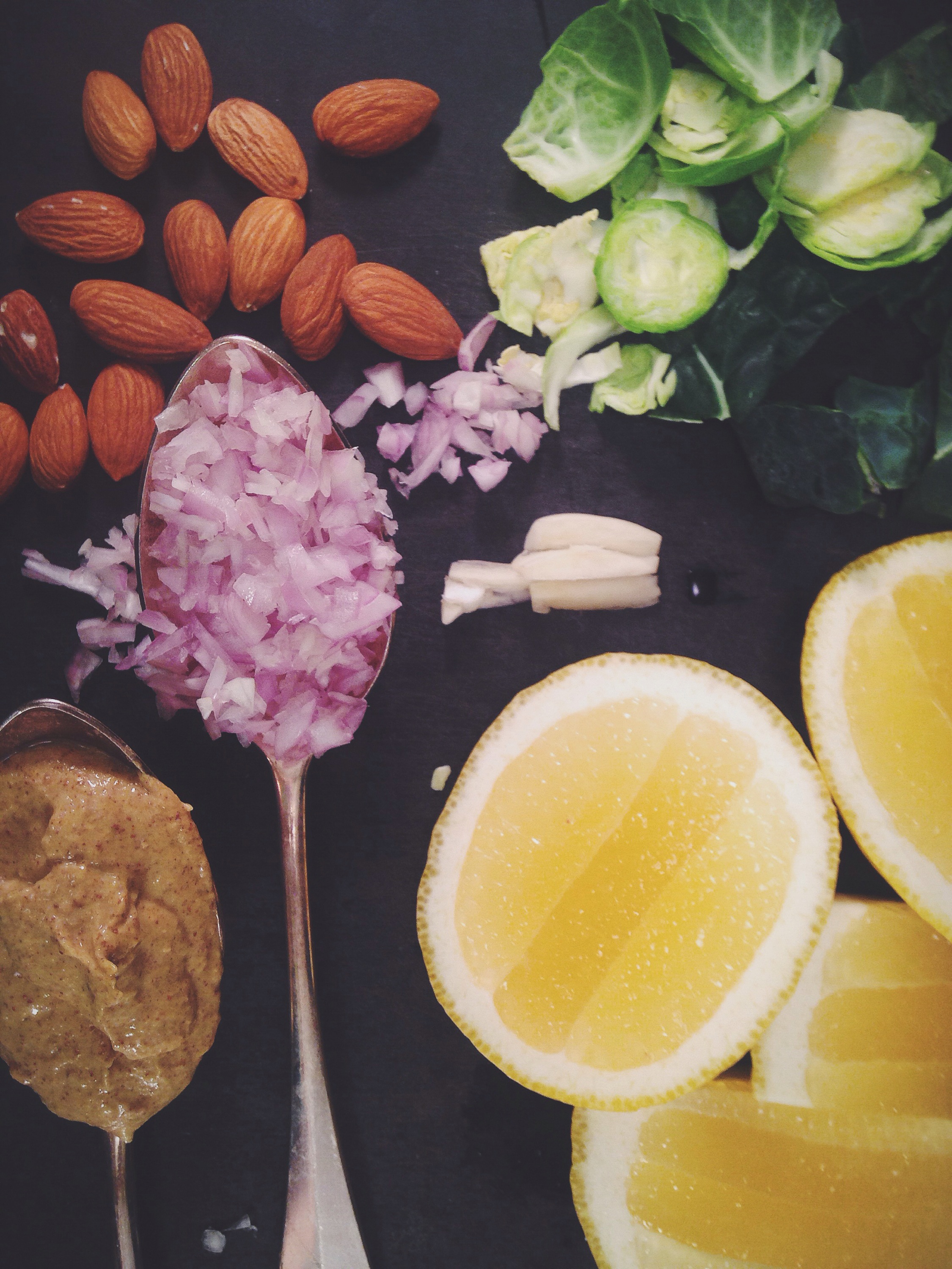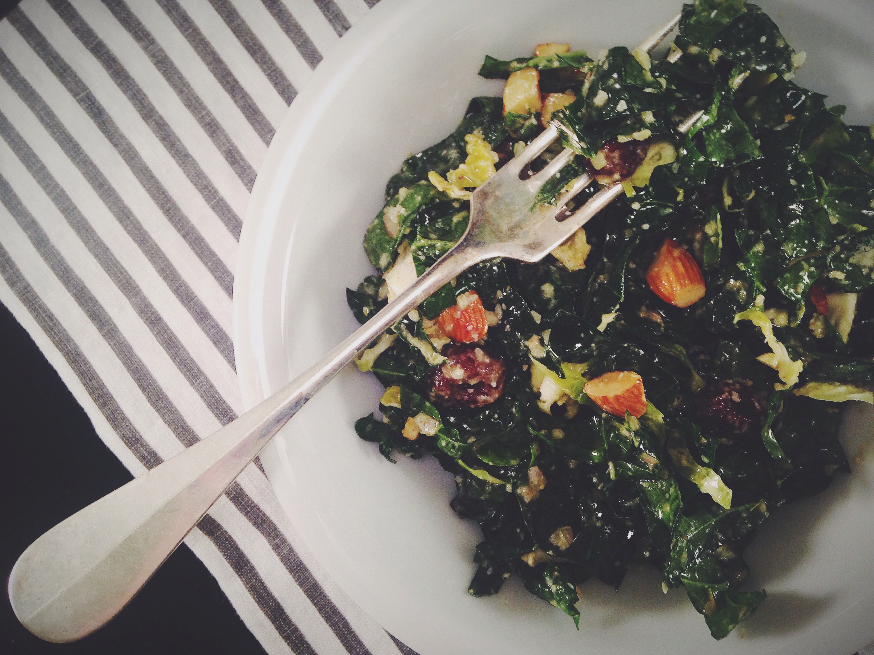 Kale & Brussel Sprout Salad, recipe adapted from Bon Appetite