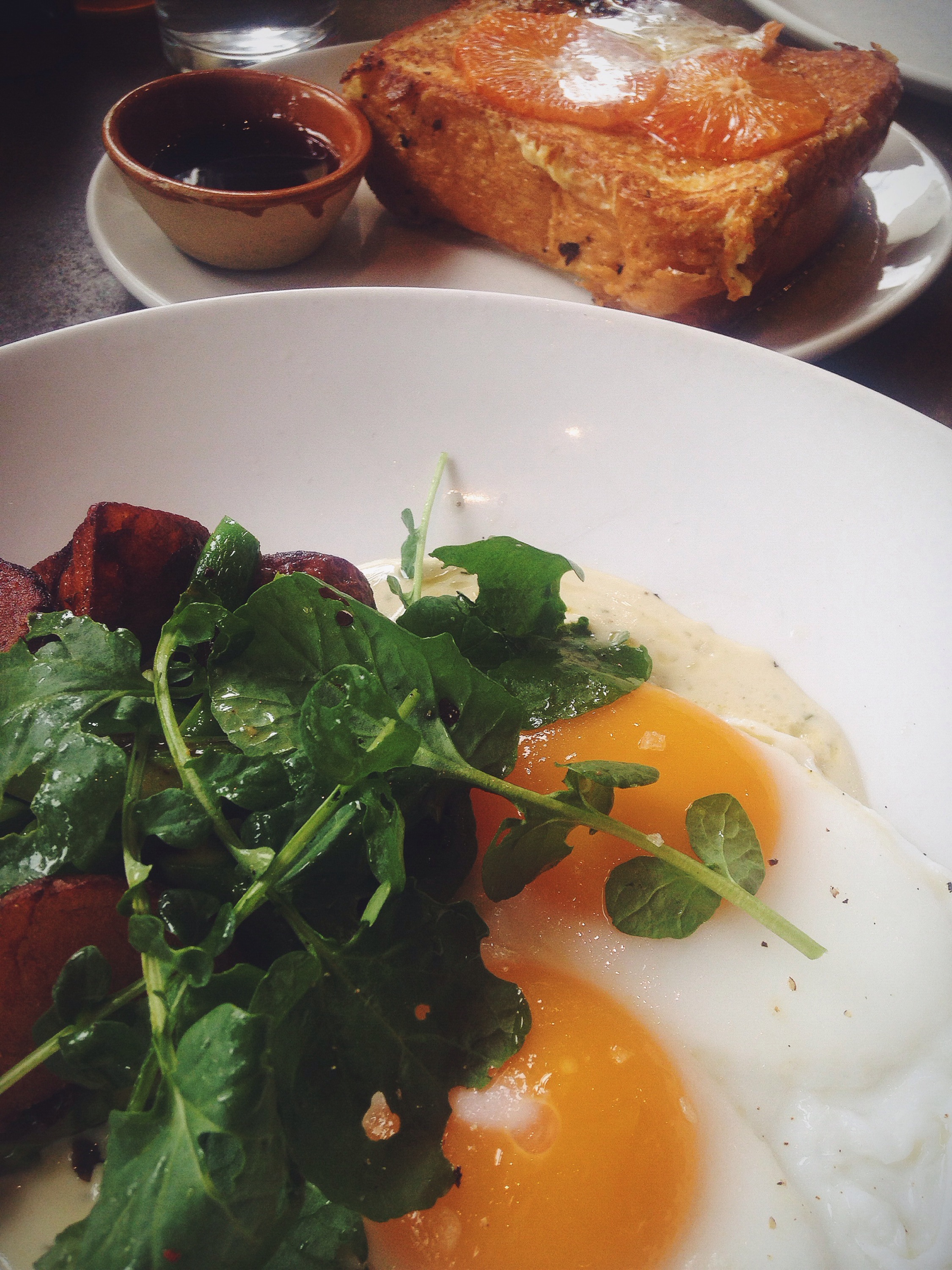 What a lovely lovely restaurant. Nopa is not just a place to eat. It’s a place to visit with a friend, watch artists working their craft, observe people laughing and to enjoy a content moment of life. As I sit here thinking back on the few times I’ve eaten there I’m realizing it might be my favorite place to dine in San Francisco. It’s just really well done. Everything from the laid back atmosphere to the kind and conversational staff to the rustic, local and seasonal approach to food…it all speaks to me and my foodie heart. Dinner is delicious but if you have the chance to grab a spot at the bar or the community table for brunch, you are in for a real treat. Insider tip, the french toast is not to be missed.