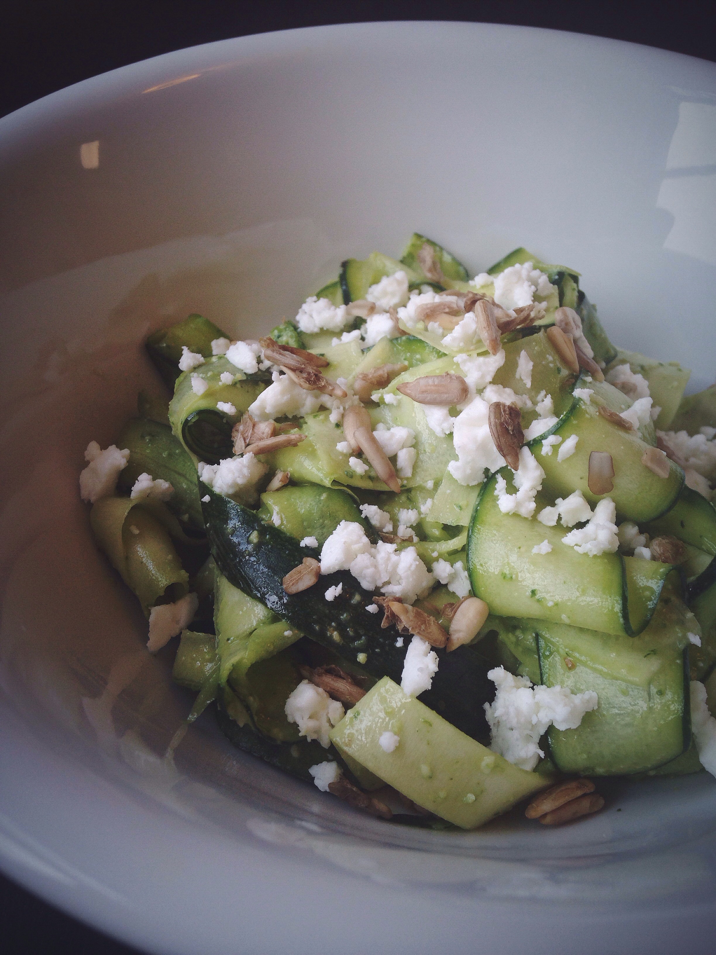 Zucchini Noodles with Spinach Pesto, Feta & Sunflower Seed