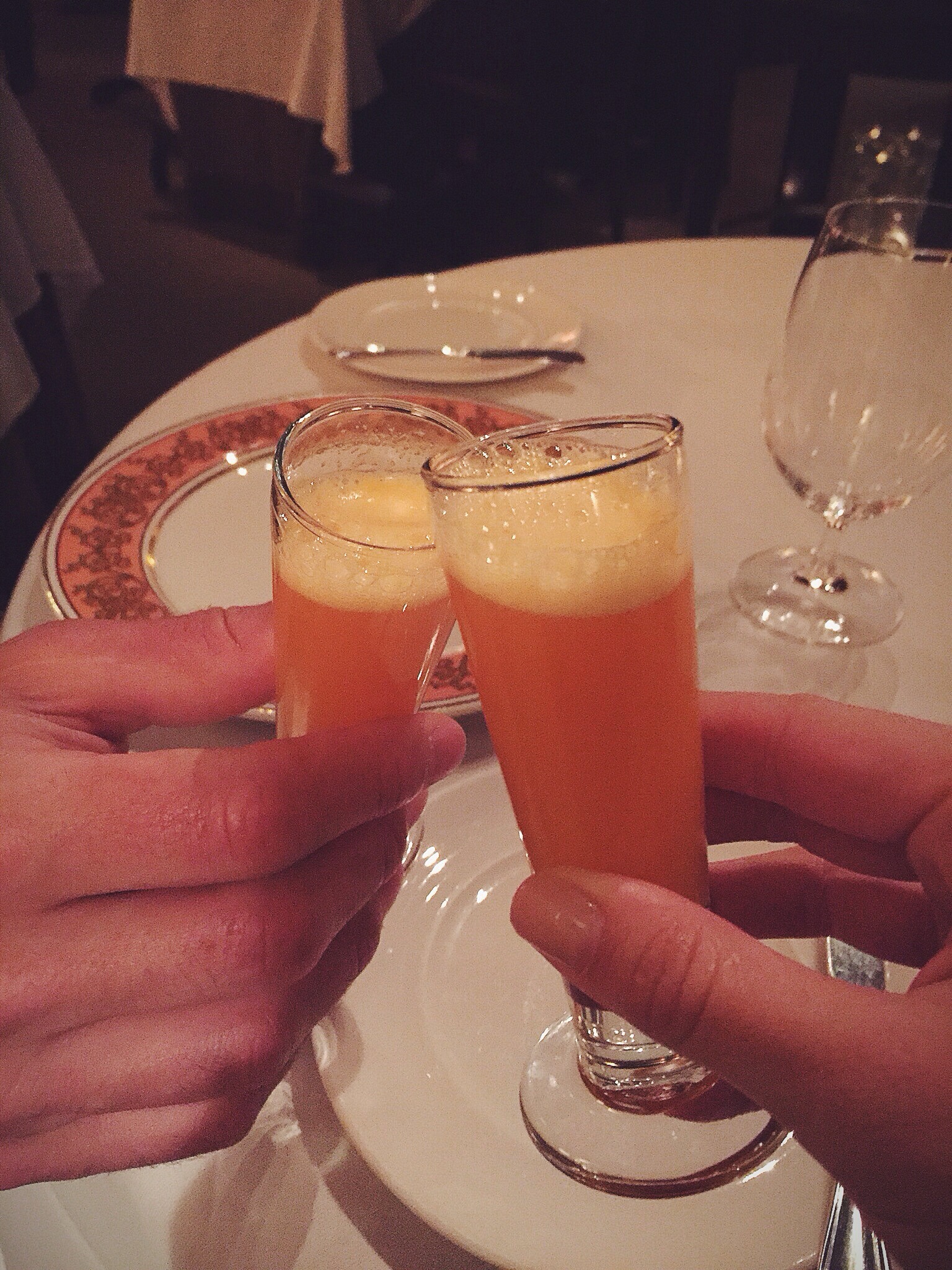 A palette cleanser of orange juice and sweet vermouth to start off the night (compliments of the chef)
