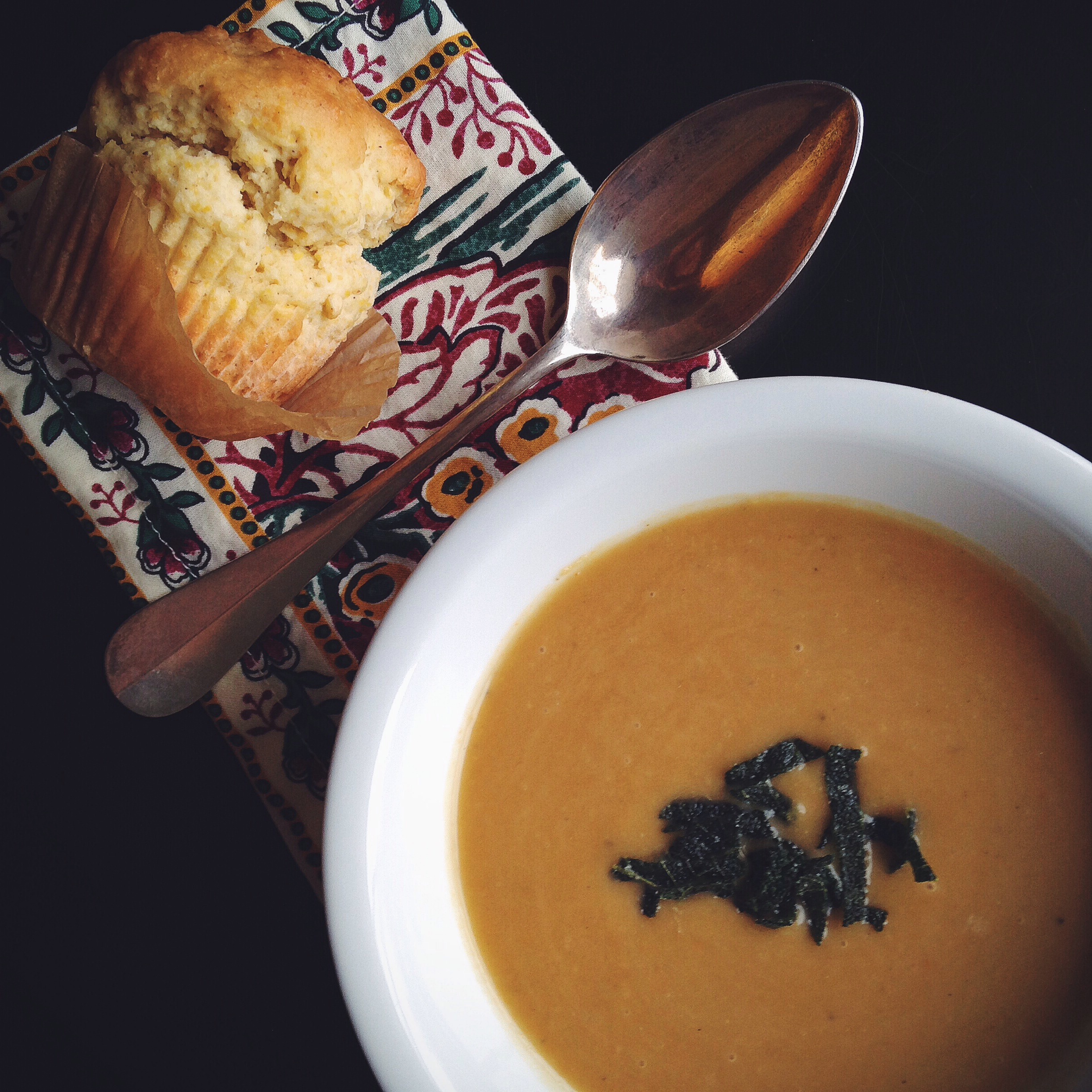 Over the river and through the woods to Washington state we go! I am so excited to head home this week and spend some much needed QT with my family. There will be lots of laughing at very loud volumes, eating – duh, cozy couch time and much needed R&R. There is also guaranteed to be lots of yummy food and wine to indulge in so I plan to eat pretty dang clean the next few days to make up for any splurges I might have in the near future. One way to do so while still feeling entirely seasonal and keeping it easy in the kitchen leading up to Thanksgiving is this crock pot soup. Not only does it satisfy the holiday vibes with sweet butternut squash and bright apple flavors, but it is one of the easiest soups I’ve ever made. Basically throw it all in and let it do it’s thing while you work your magic in the kitchen leading up to Turkey Day.