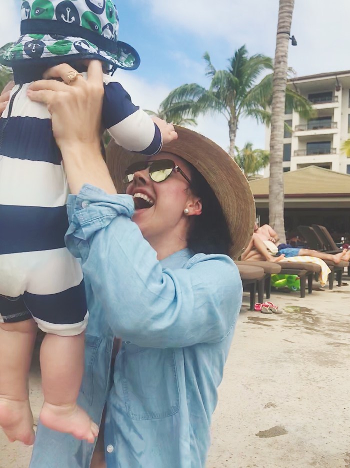 Last week my sweet little family of three spent our first vacation together in Maui. While the photos share an Instagram worthy story of sunshine and rainbows (literally), real life had us longing for the comforts and convenience of home and realizing we pulled the trigger on such a big adventure with a..scratch that, OUR…9 month old a bit too soon. To steal my hubs saying, the juice wasn’t quite worth the squeeze. We definitely had sweet moments and memories I will cherish forever. My favorite was on the last full day when my little bug and I went for a beach walk together to explore the sand and waves. He was captivated and held tight to his Batman toy with a clenched fist of concentration the entire time. We ended our walk with a nice long play session on the soft grass using Mom as a jungle gym and every stick in sight as a challenge of dexterity. This is my favorite baby stage so far! Maui is AHH-MAZING and you could be having the worst trip (or luck*) of all time and still be in paradise because MAUI. To be clear, ours was not the worst trip of all time. But making such a trek with our “spirited” 9 month old simply wasn’t fun for us and wasn’t fair to him. All of that said, by the end of the trip there were definitely a few takeaways I had from traveling in Maui with a baby I thought were worth sharing in case you’re planning a trip with your family to the island sometime in the future.